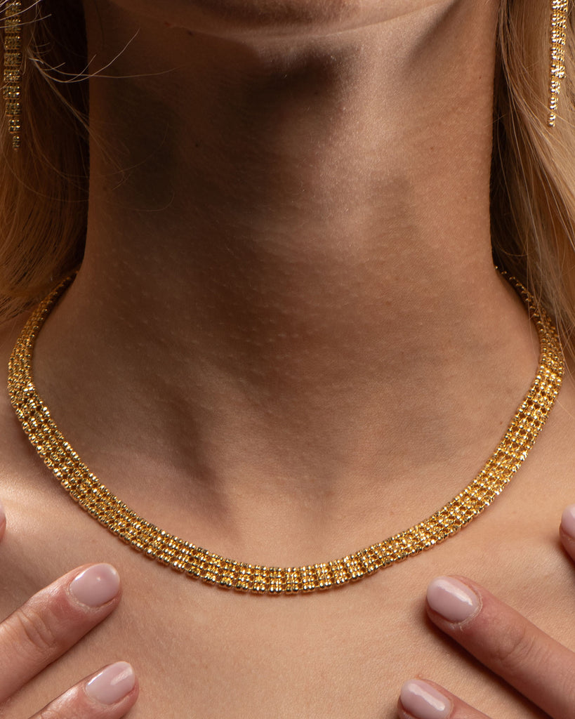 La collezione Crystal rappresenta l'essenza del brand Desmos. Ogni gioiello è composto di elementi tondi infilati a mano e interamente diamantati per regalare una luce unica, che dura nel tempo. Crystal comprende bracciali, collane, orecchini e anelli in argento o in oro 18 carati, disponibili in diverse dimensioni e design, da donna e da uomo.