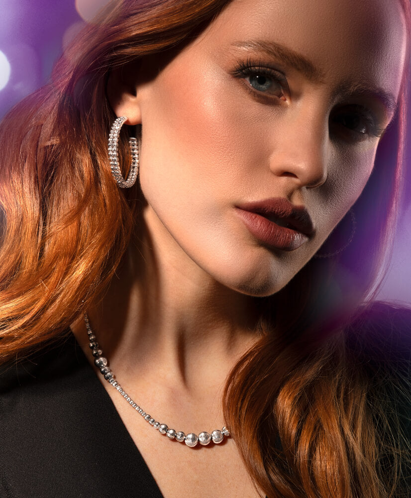 La nuova collezione di gioielli in argento Swing impreziosisce la catena Infinity, aggiungendo piccoli cabochon di pietre naturali. Il risultato è una parure elegante, luminosa e con un tocco di colore in più.