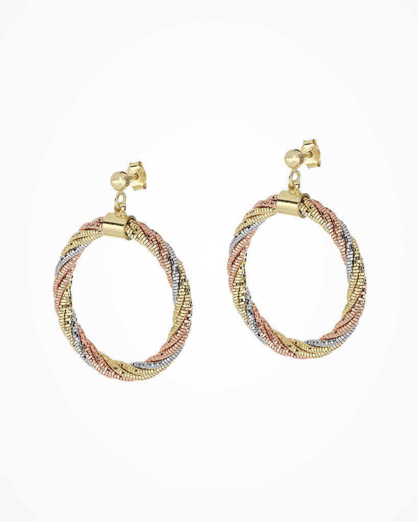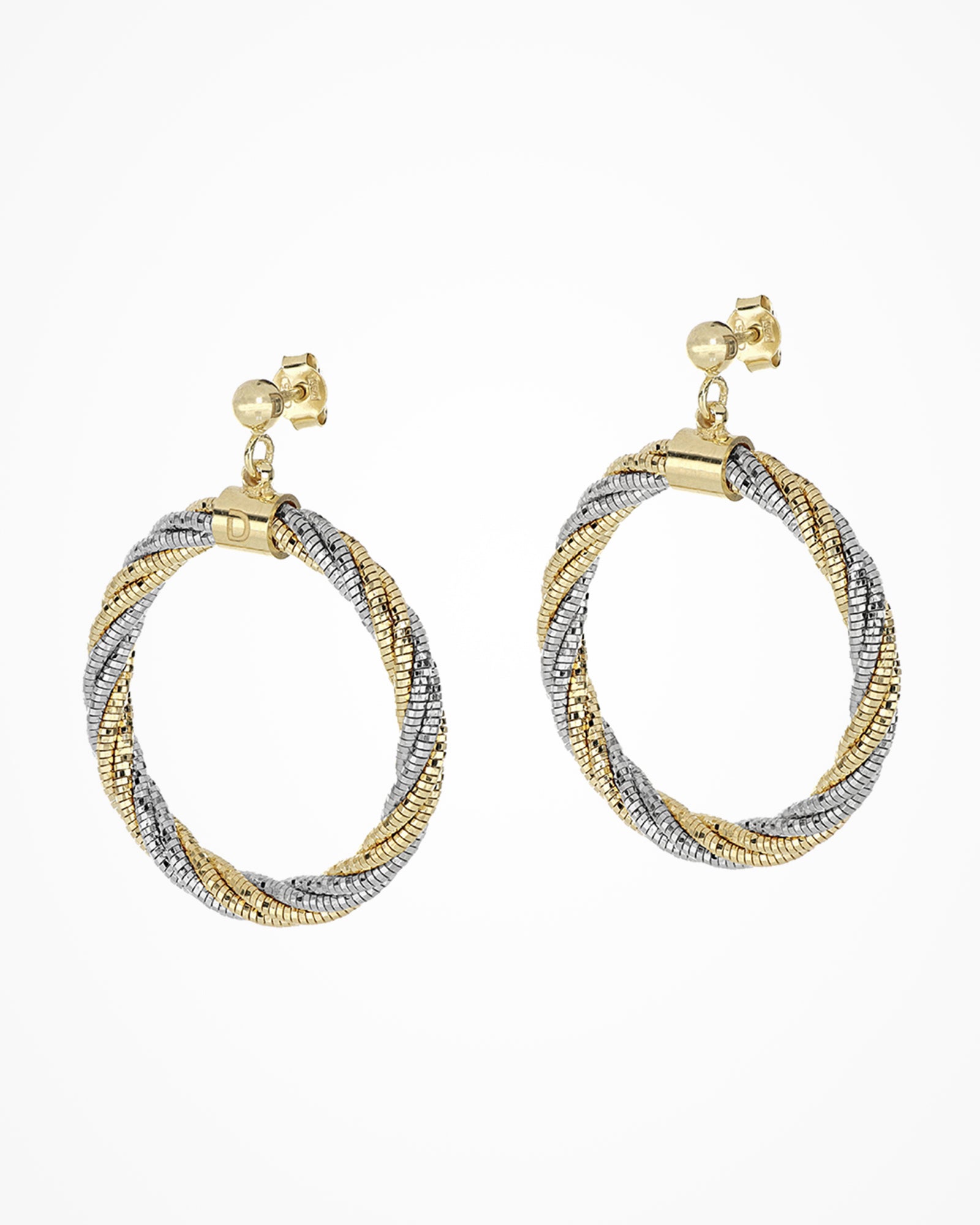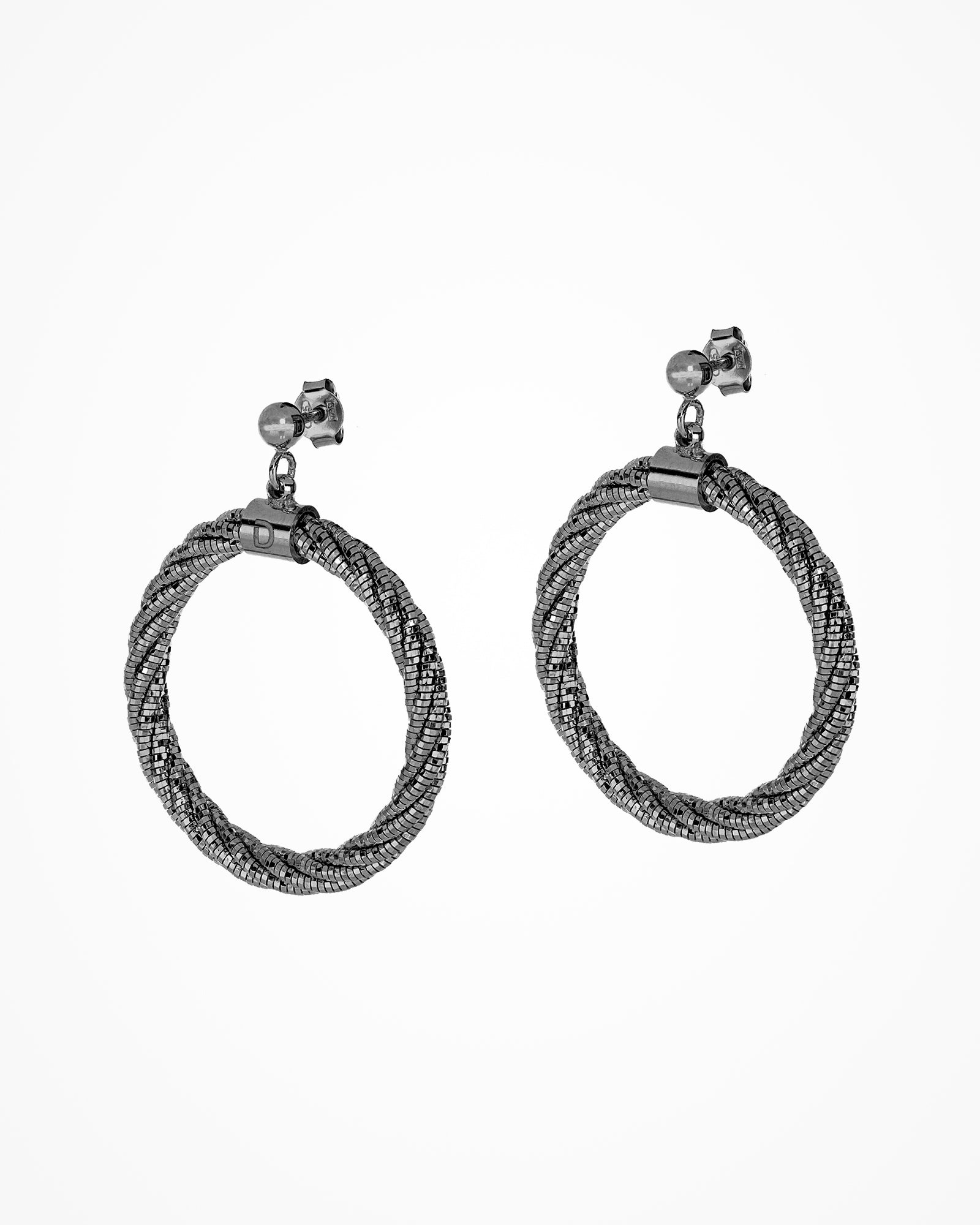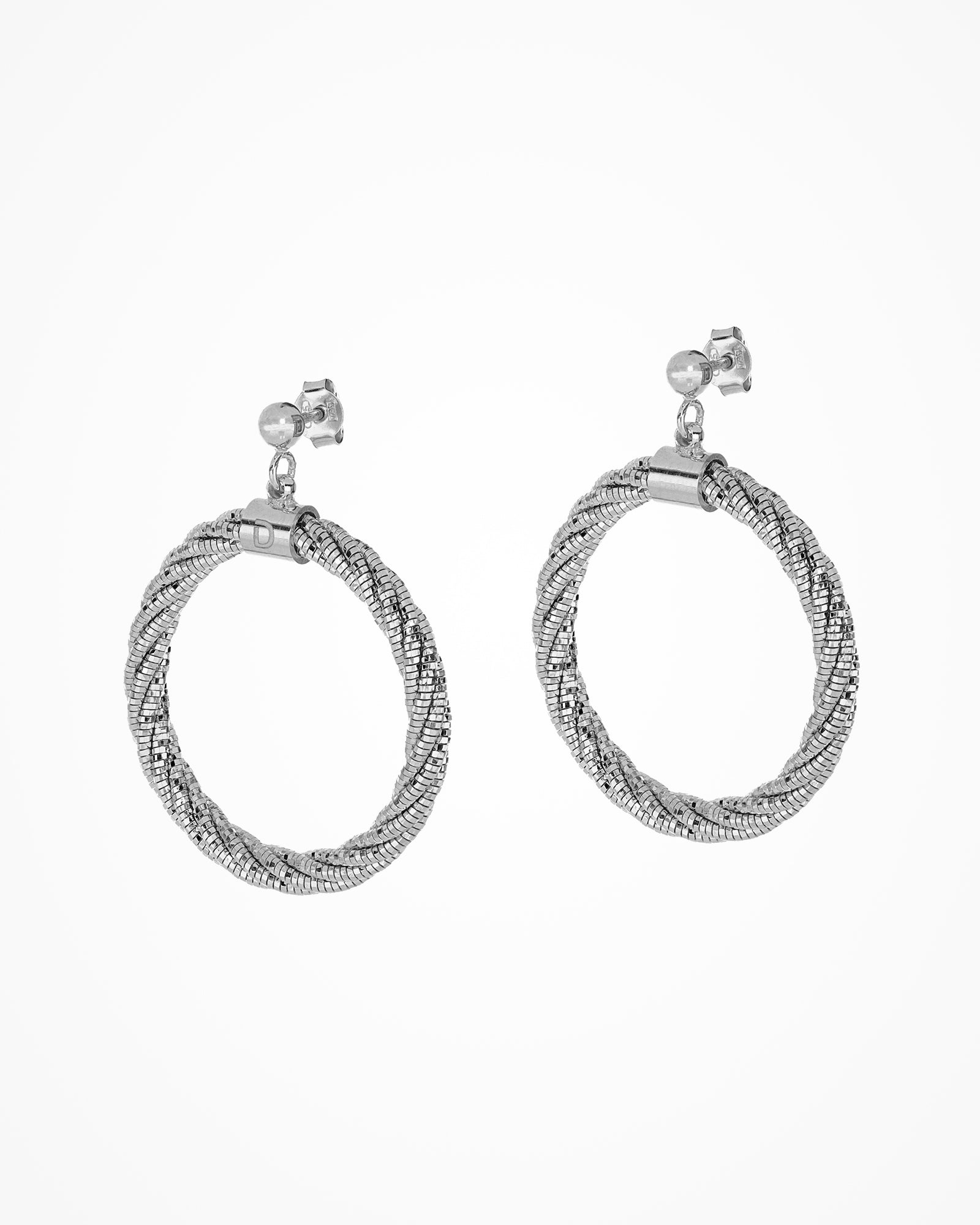 Silberne Ohrringe mit einem runden Vorderteil, das durch einen Dreheffekt Licht und Bewegung erzeugt.