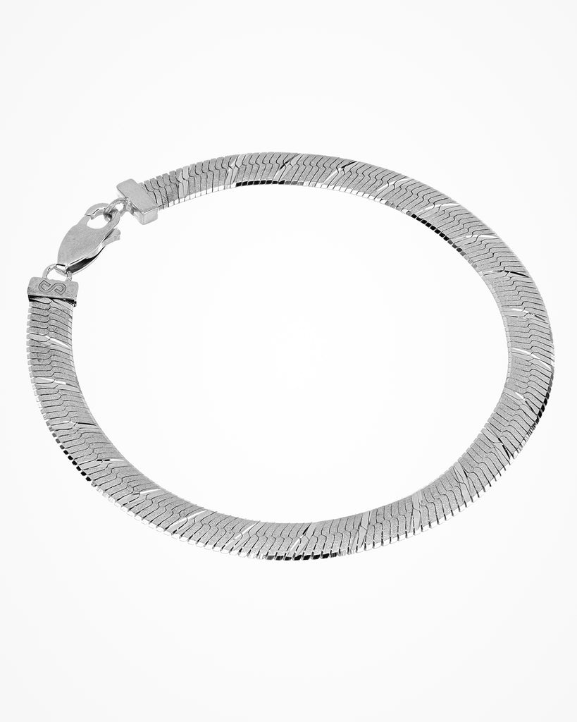 The Herringbone collection, as well as Wonder and Stardust, includes very shiny silver bracelets and bracelets. The chain is flat and supple, and the difference from one line and the other is the finishing that alternate shiny patterns along the jewelry surface.