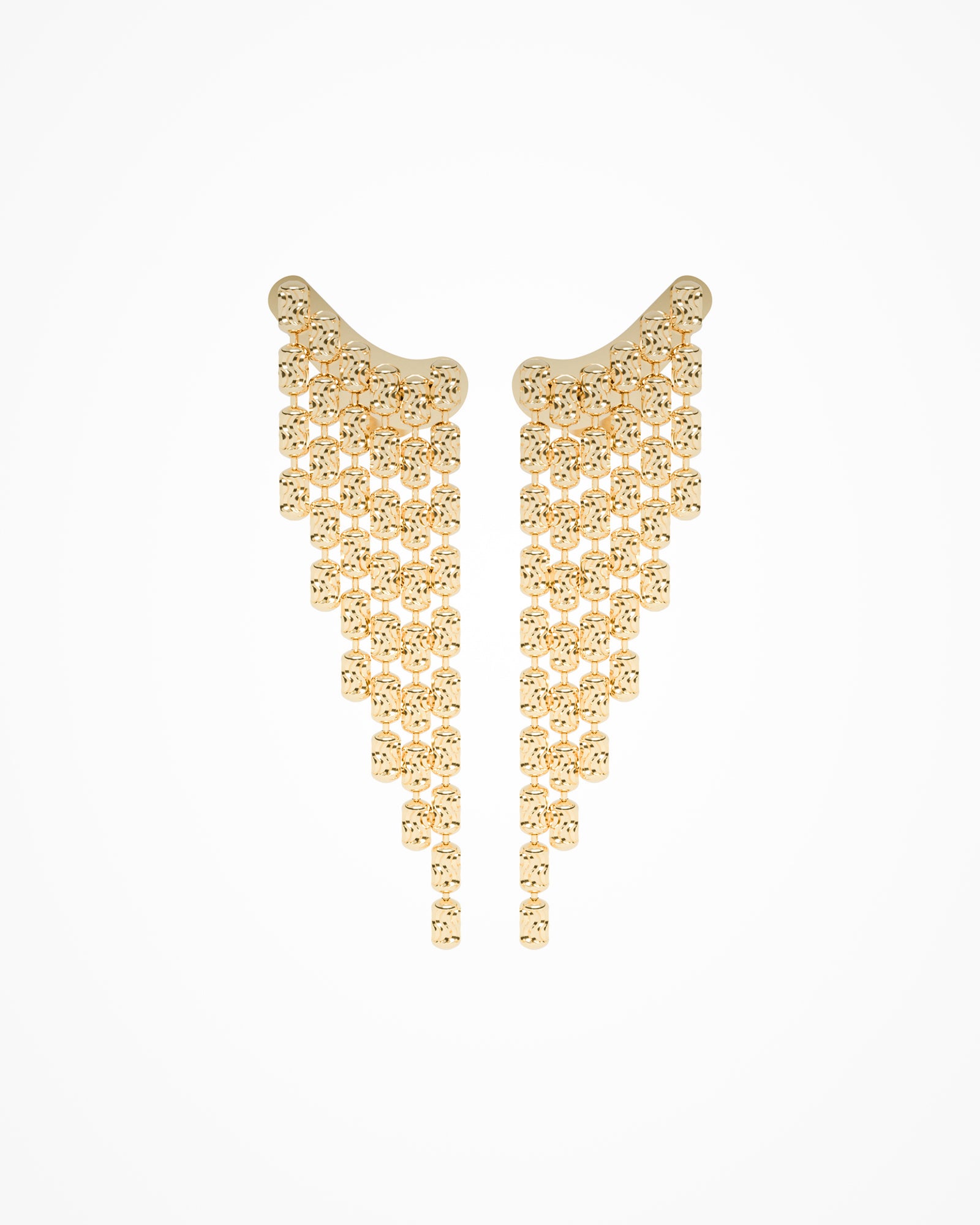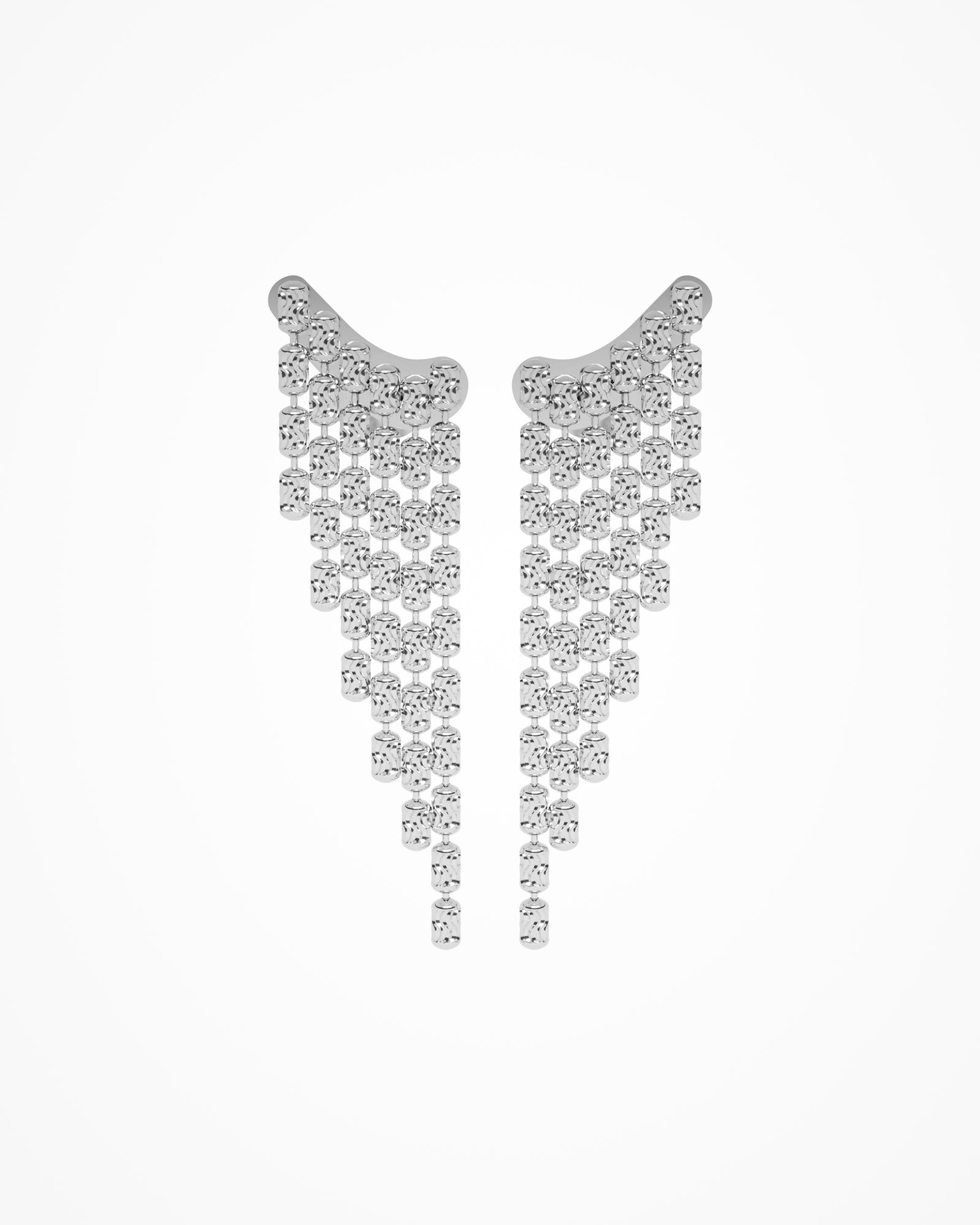 Silver pendent earrings with six rows of small cylinders free to move. The diamond-cut elements provide an extra shine that lasts in time.