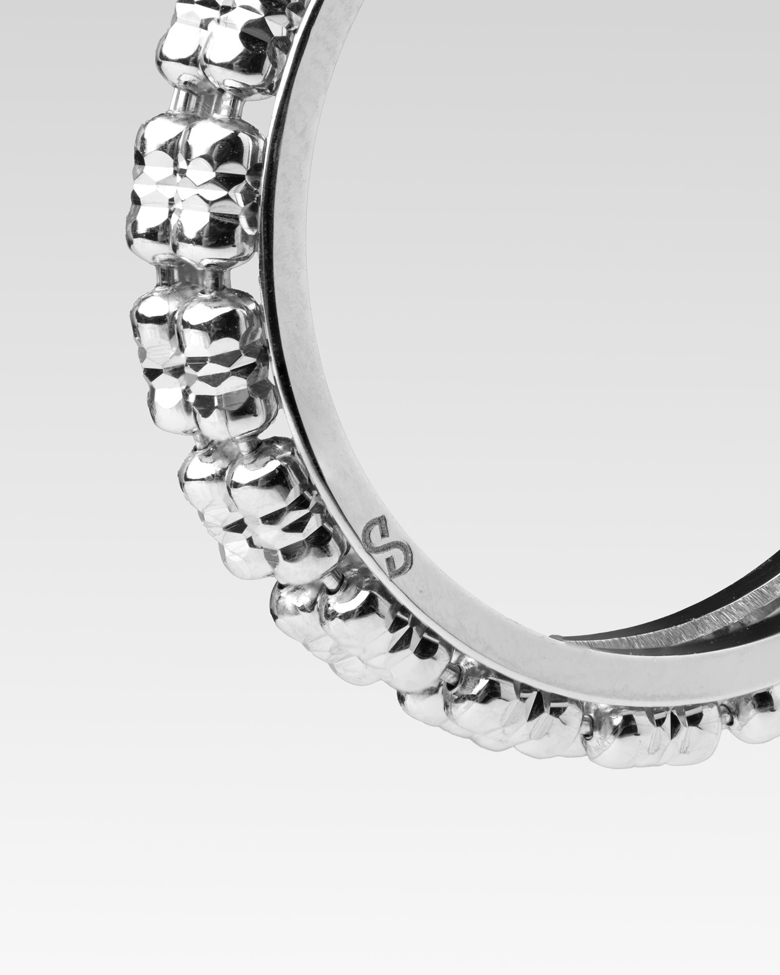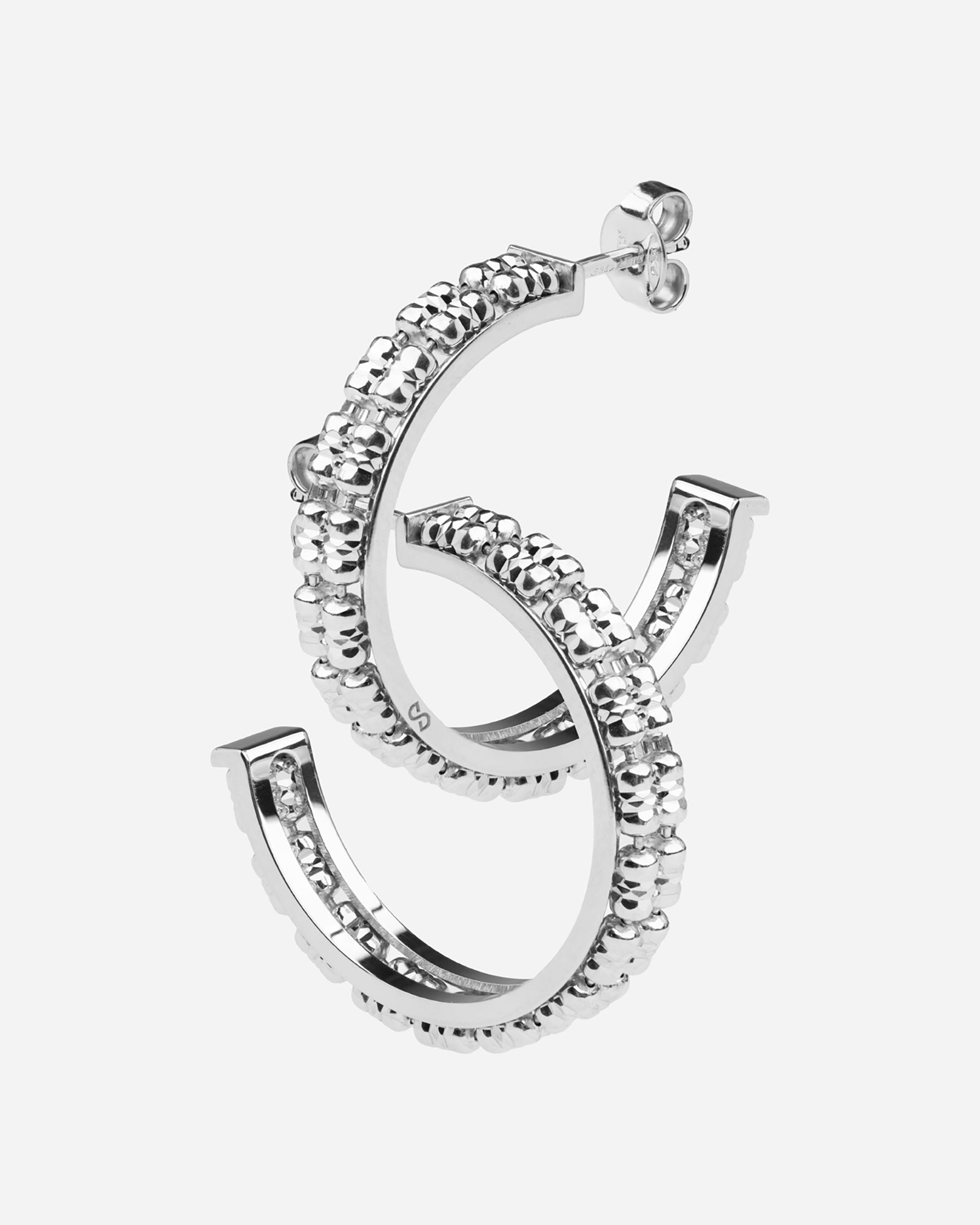 Boucles d'oreilles créoles en argent avec deux rangées de chaînes à billes côte à côte. La finition taillée en diamant offre un éclat unique et durable.