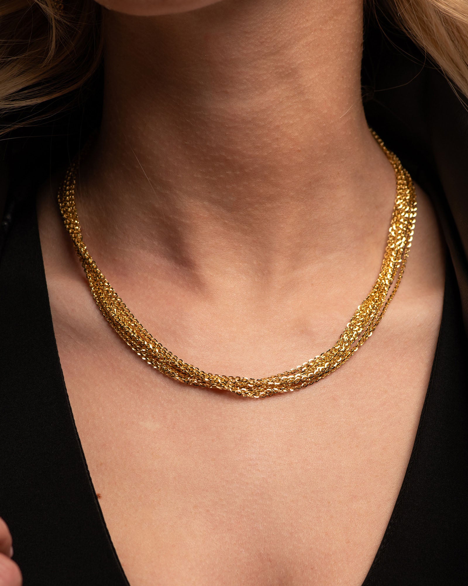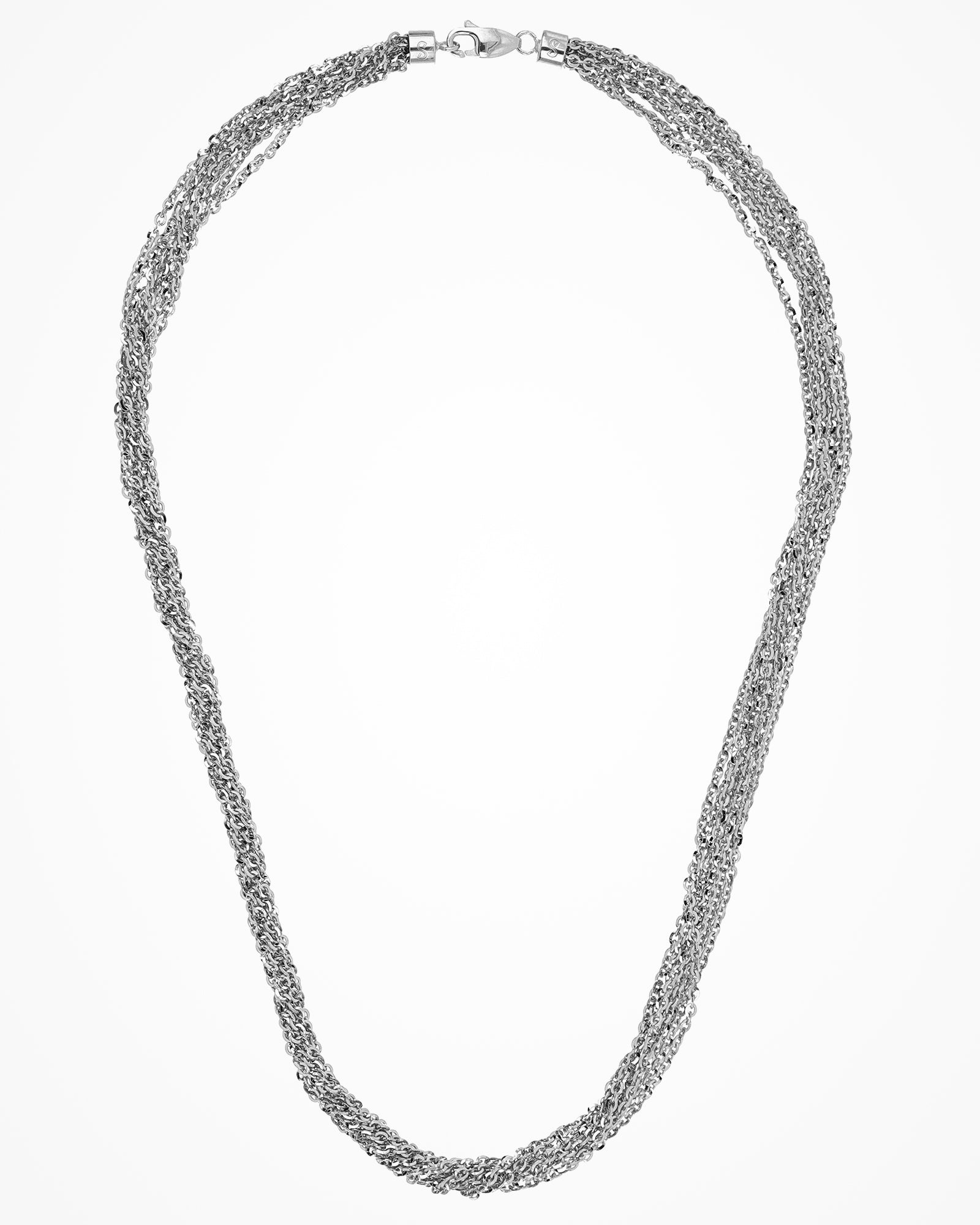 Chaîne en argent multi-rangs avec éléments ronds pour un effet de légèreté et de mouvement.