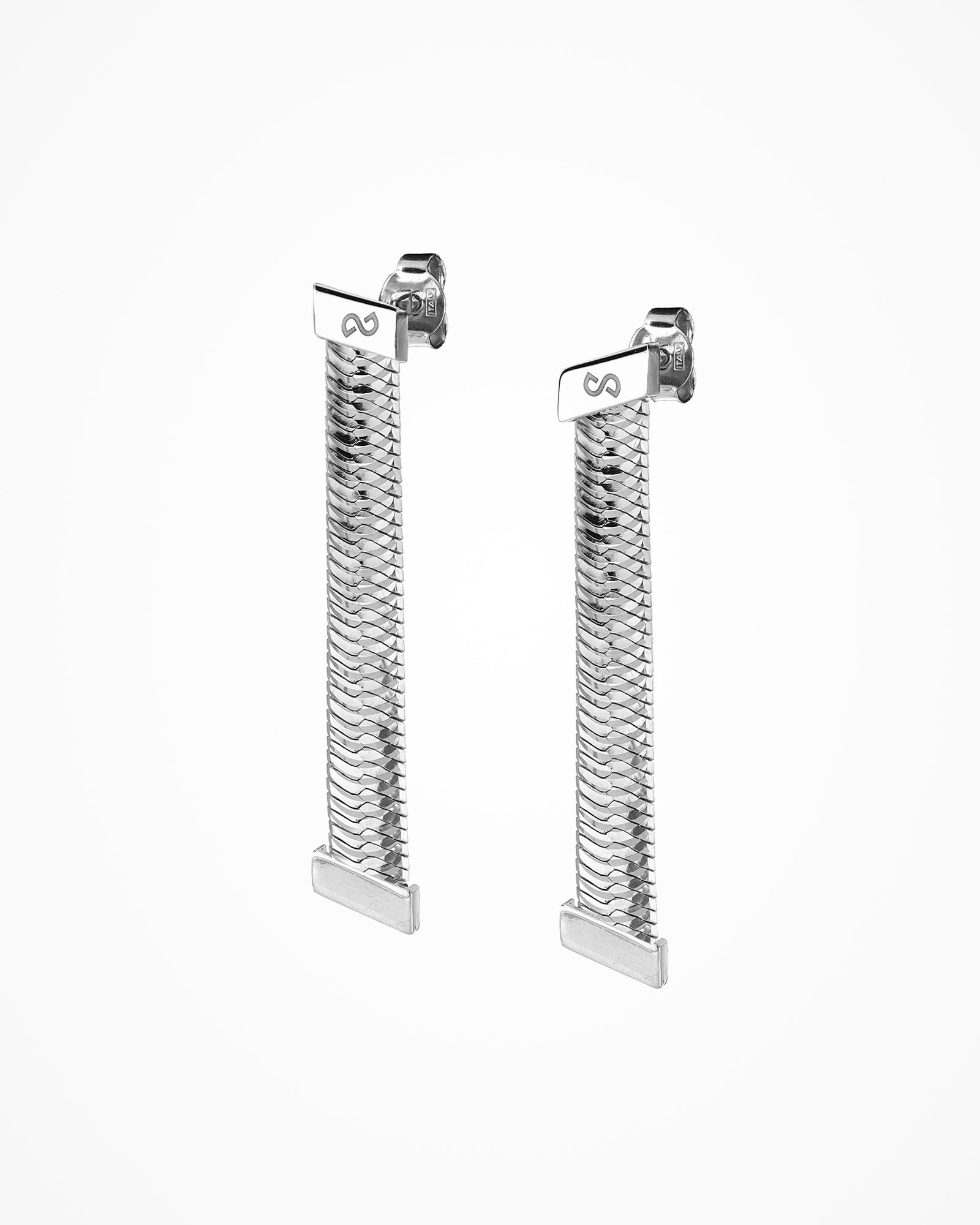 Boucles d'oreilles en argent avec une chaîne plate. Leur surface polie et leur design les rendent particulièrement élégantes.