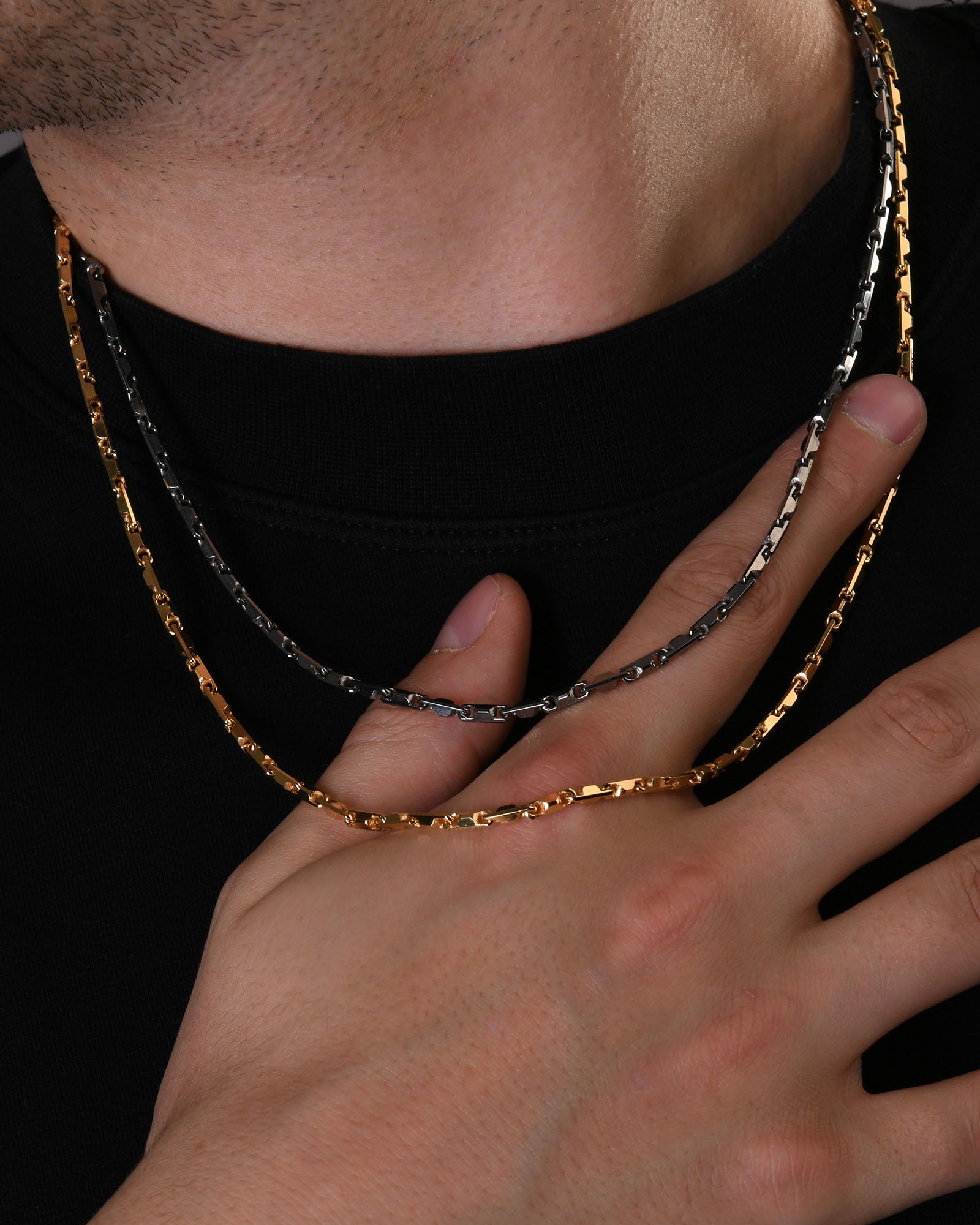 Collana in argento con stile minimal ed elementi sottili agganciati.