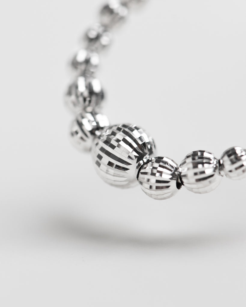 Anello in argento a palline infilate di spessore scalare. L'originale diamantatura regala una brillantezza unica e che dura nel tempo.